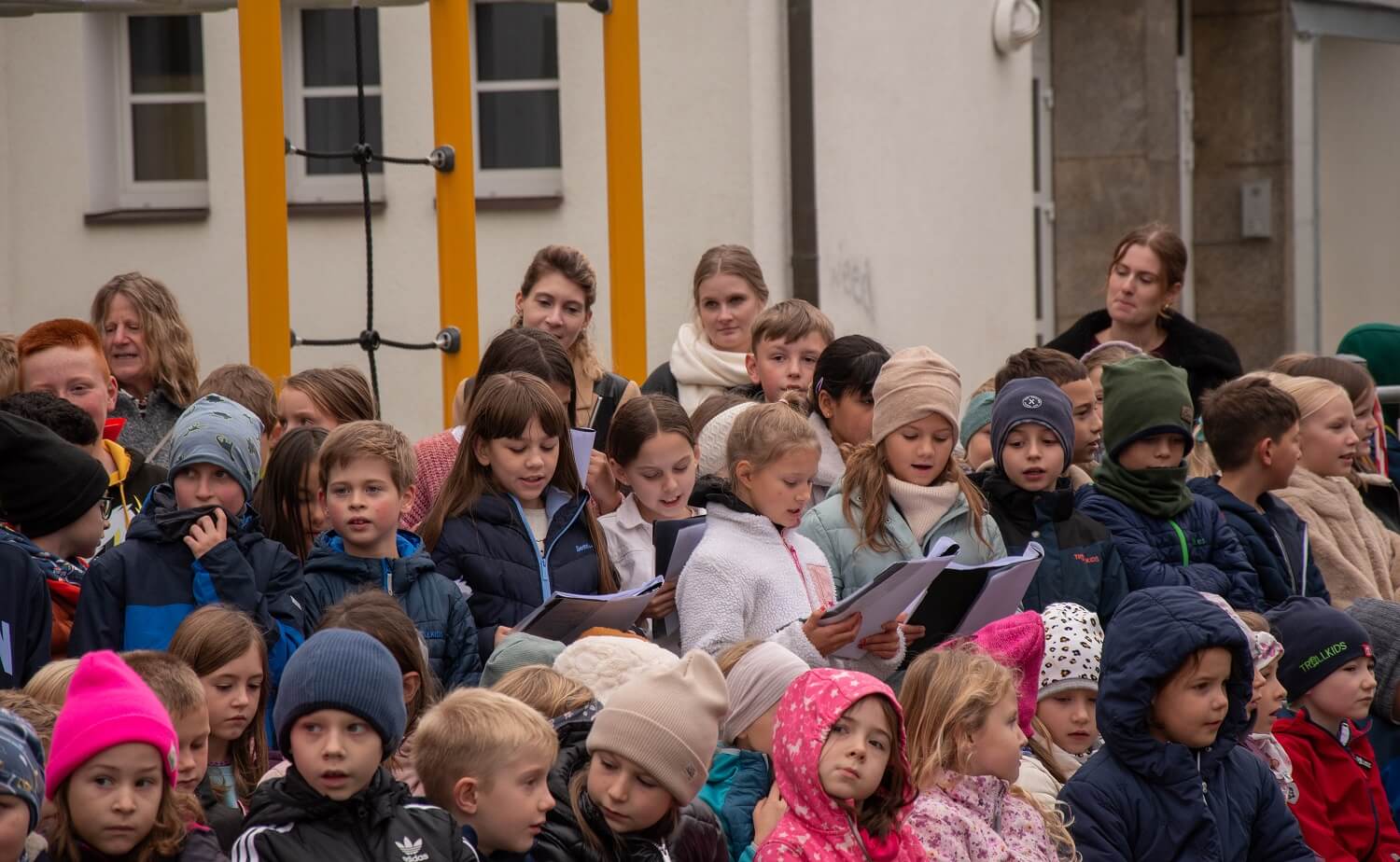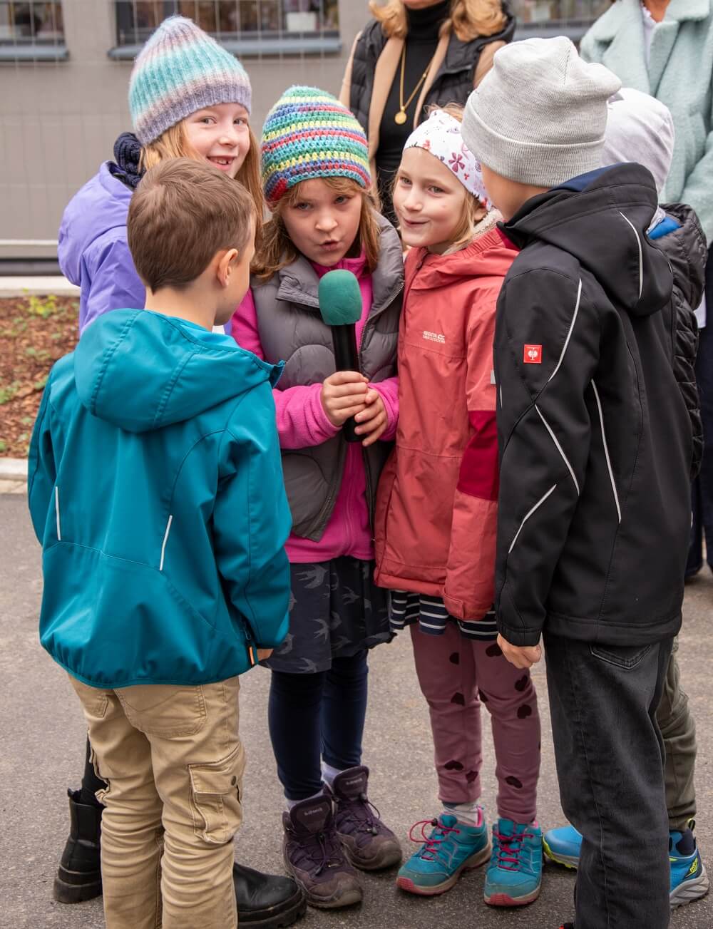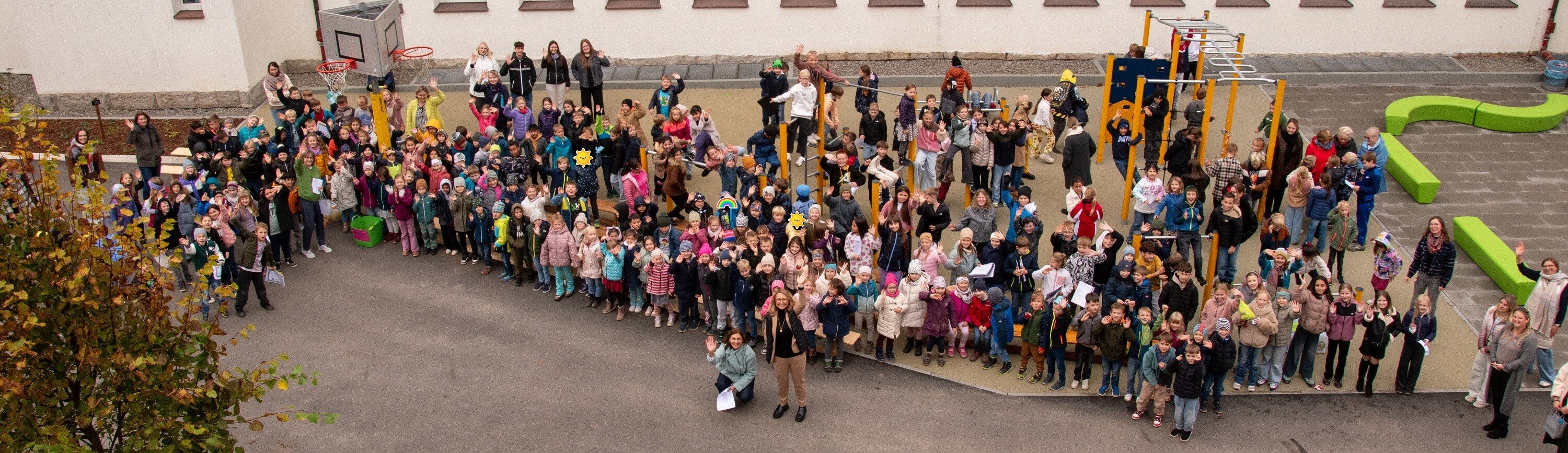 Alle Kinder, Lehrer, Vertreter des Elternbeirats und Fördervereins unserer Grundschule haben sich am Pausenhof versammelt und waren sehr aufgeregt. So lange haben wir der Eröffnung entgegengefiebert! Die Viertklässler haben sogar schon vier lange Jahre auf diesen großen Tag gewartet.