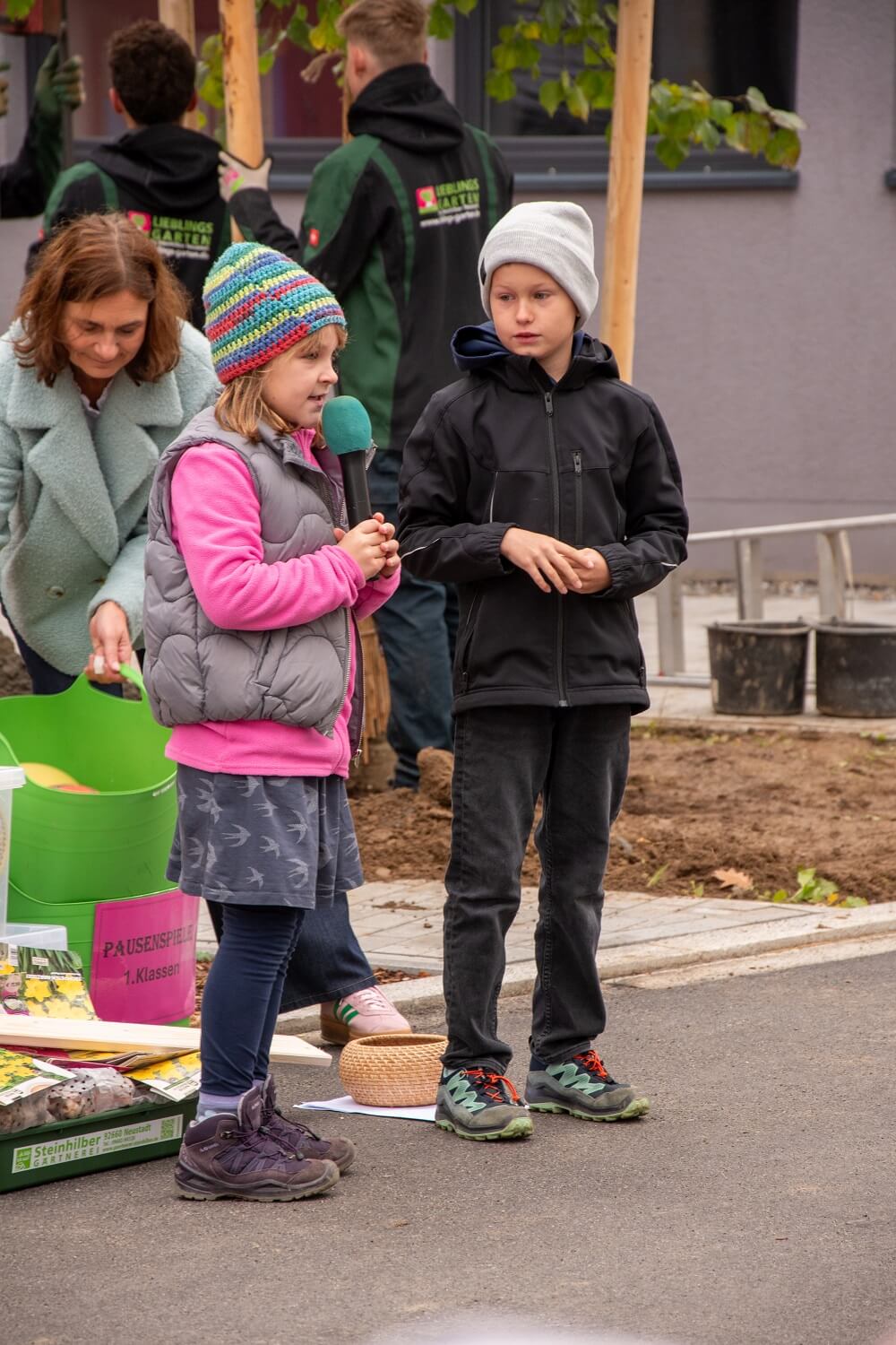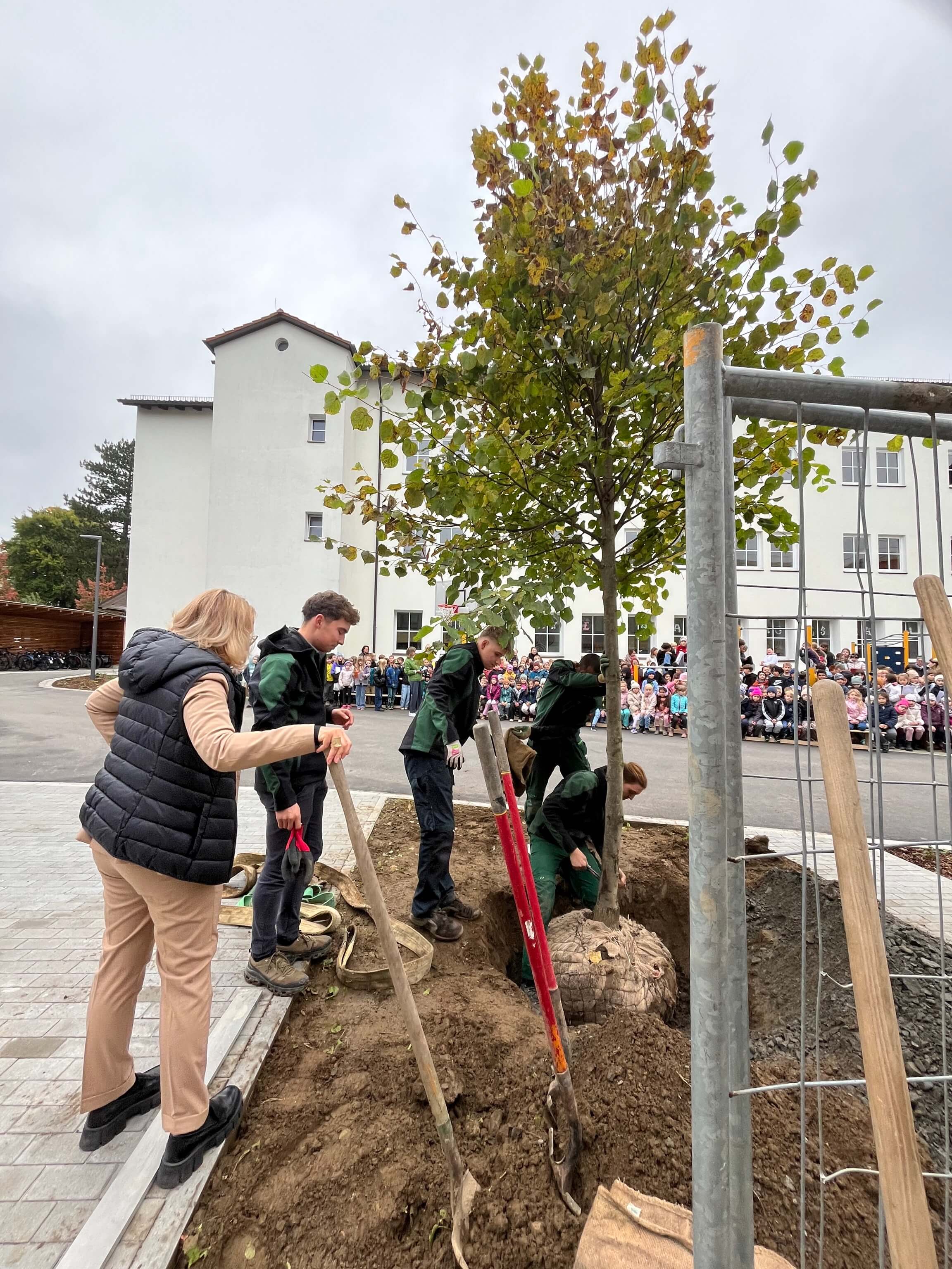 Im Zuge der Veranstaltung haben wir Lieder gesungen, Gedichte vorgetragen und das Beste: es wurde eine tolle Linde (Geschenk des Fördervereins) eingepflanzt – an dieser Stelle herzlichen Dank an die Gärtnerei Steinhilber. Die Linde hat hübsche herzförmige Blätter und wird uns im Sommer Schatten spenden.
