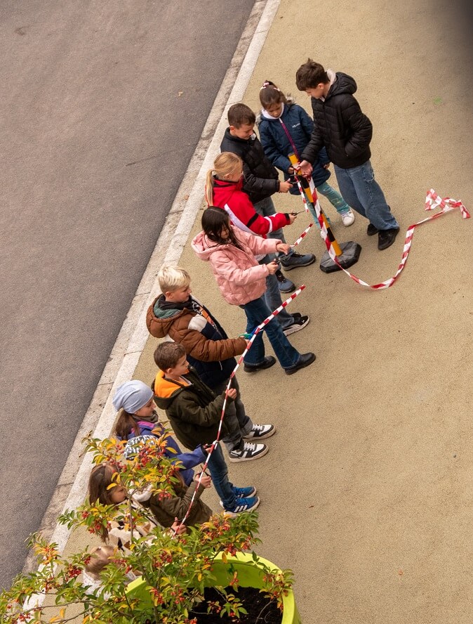 Am Freitag, den 10.10.2025, um 10 Uhr ist es passiert: Unser neuer Pausenhof wurde eröffnet.