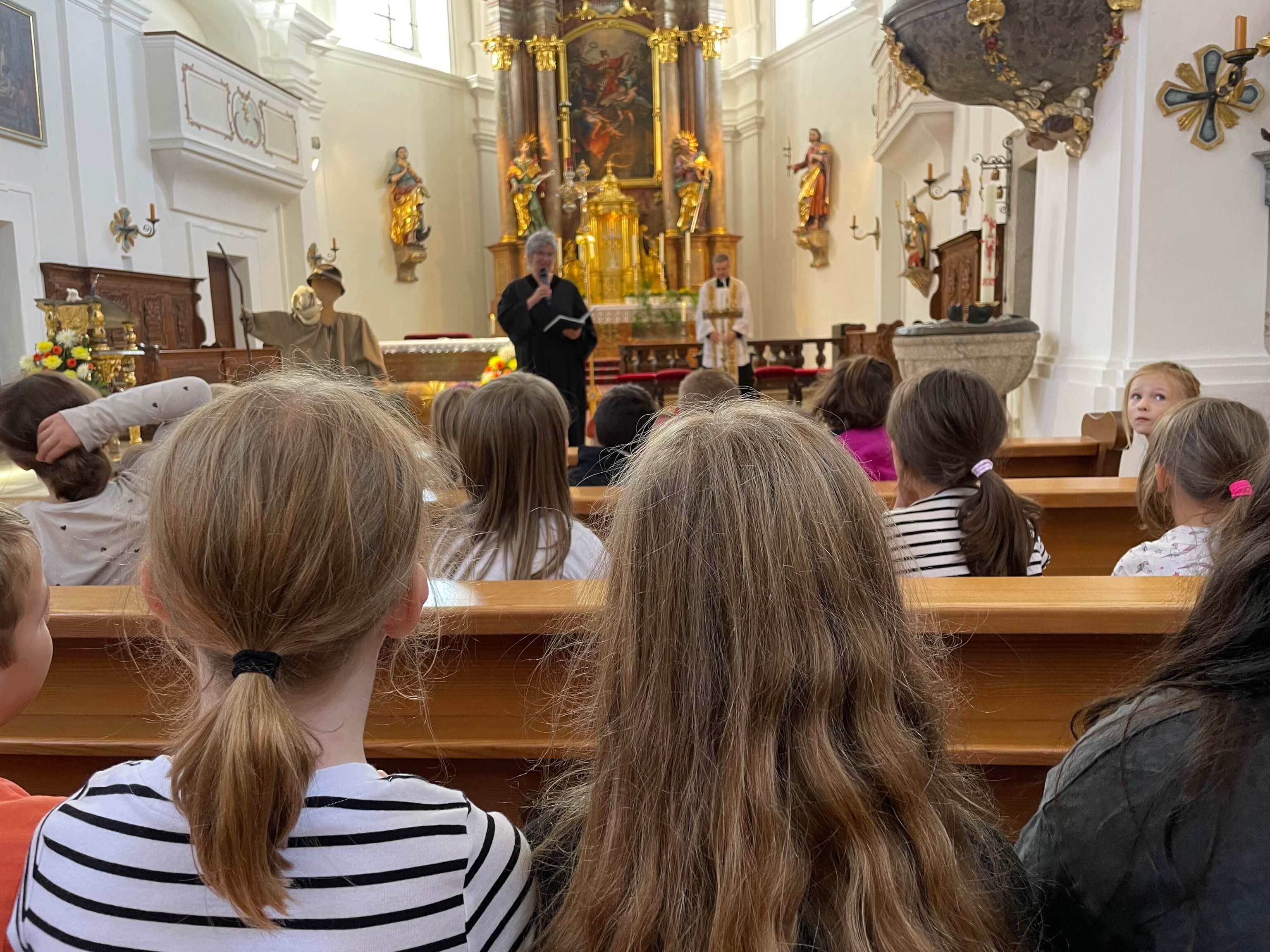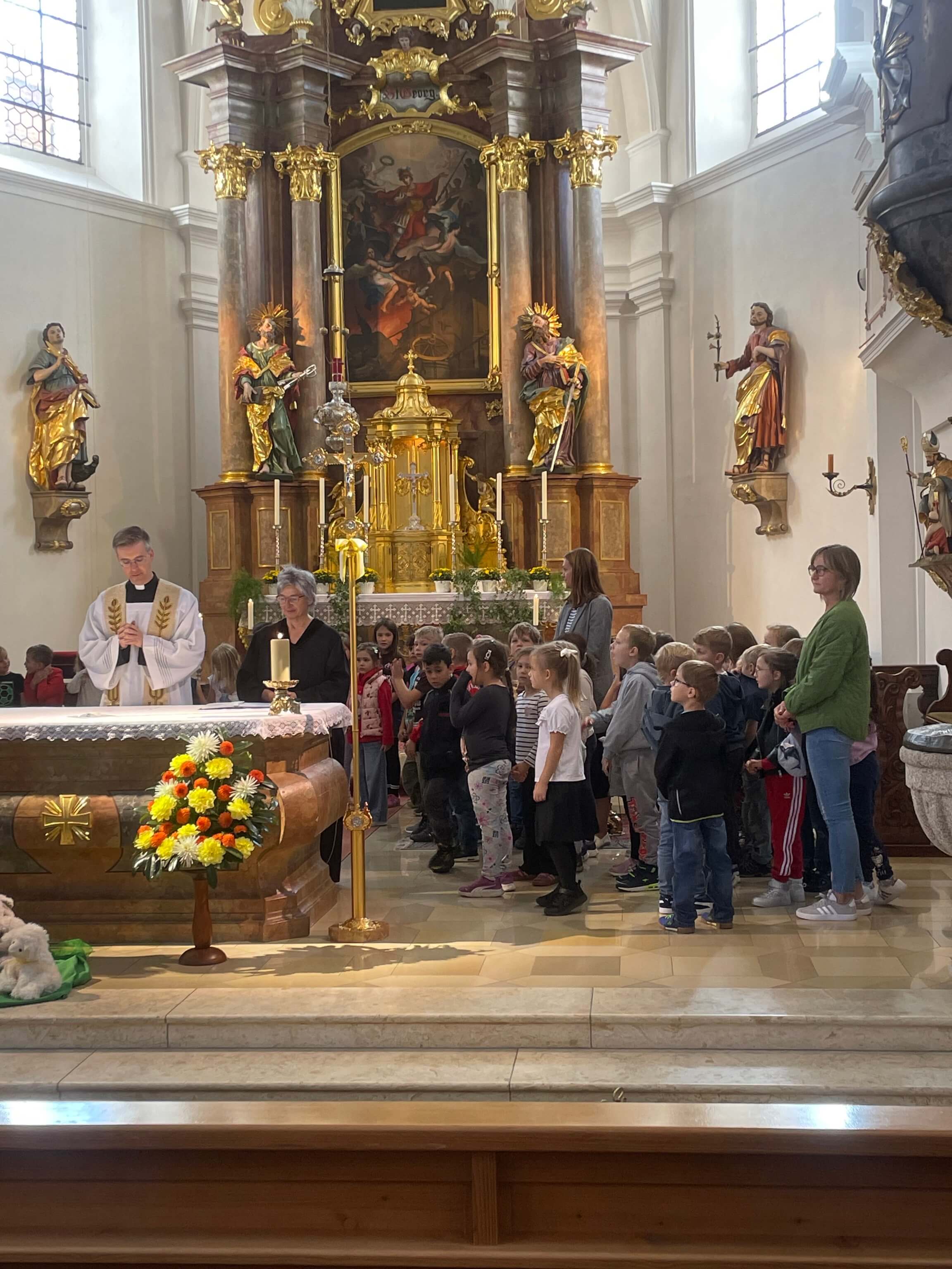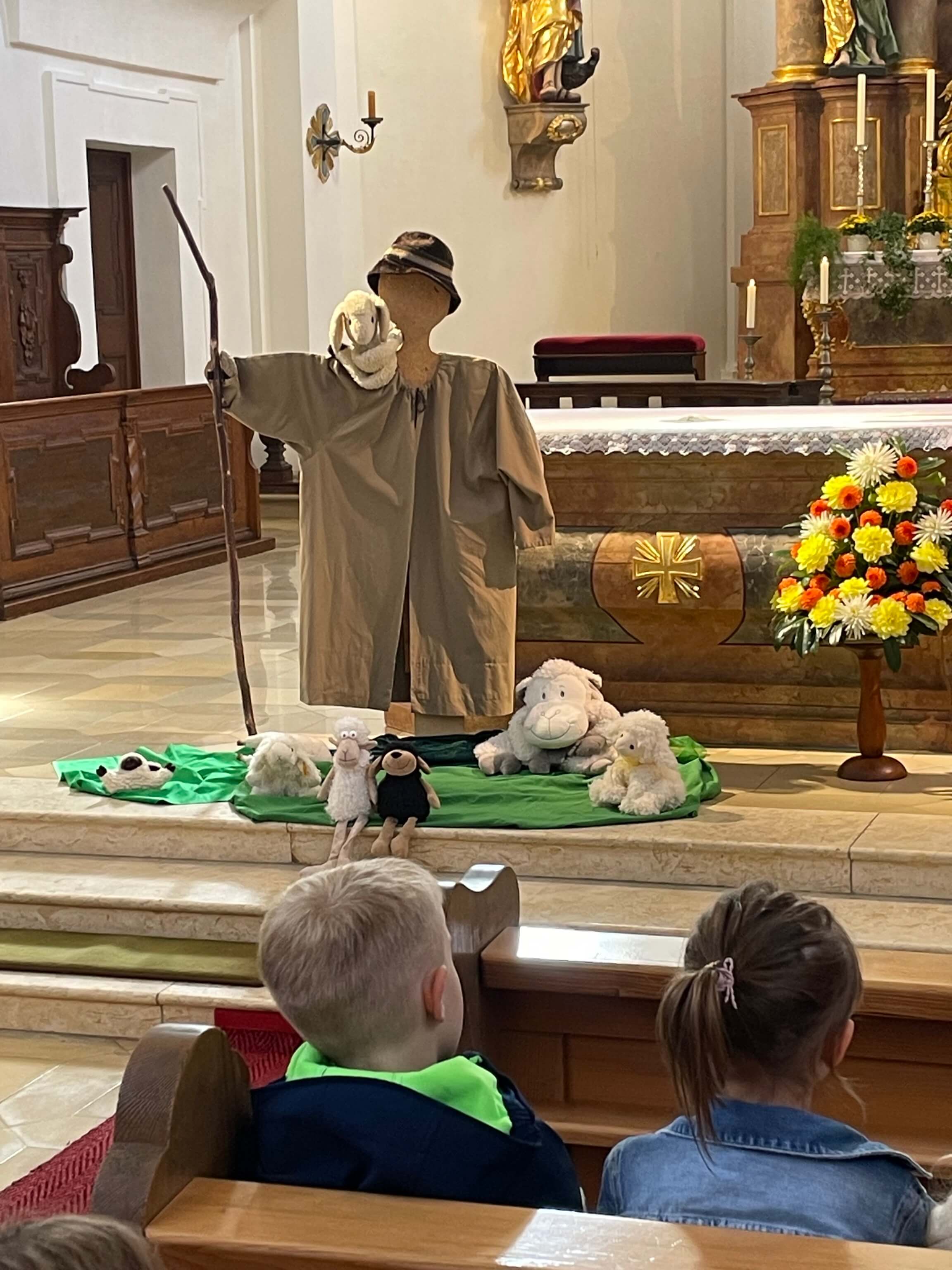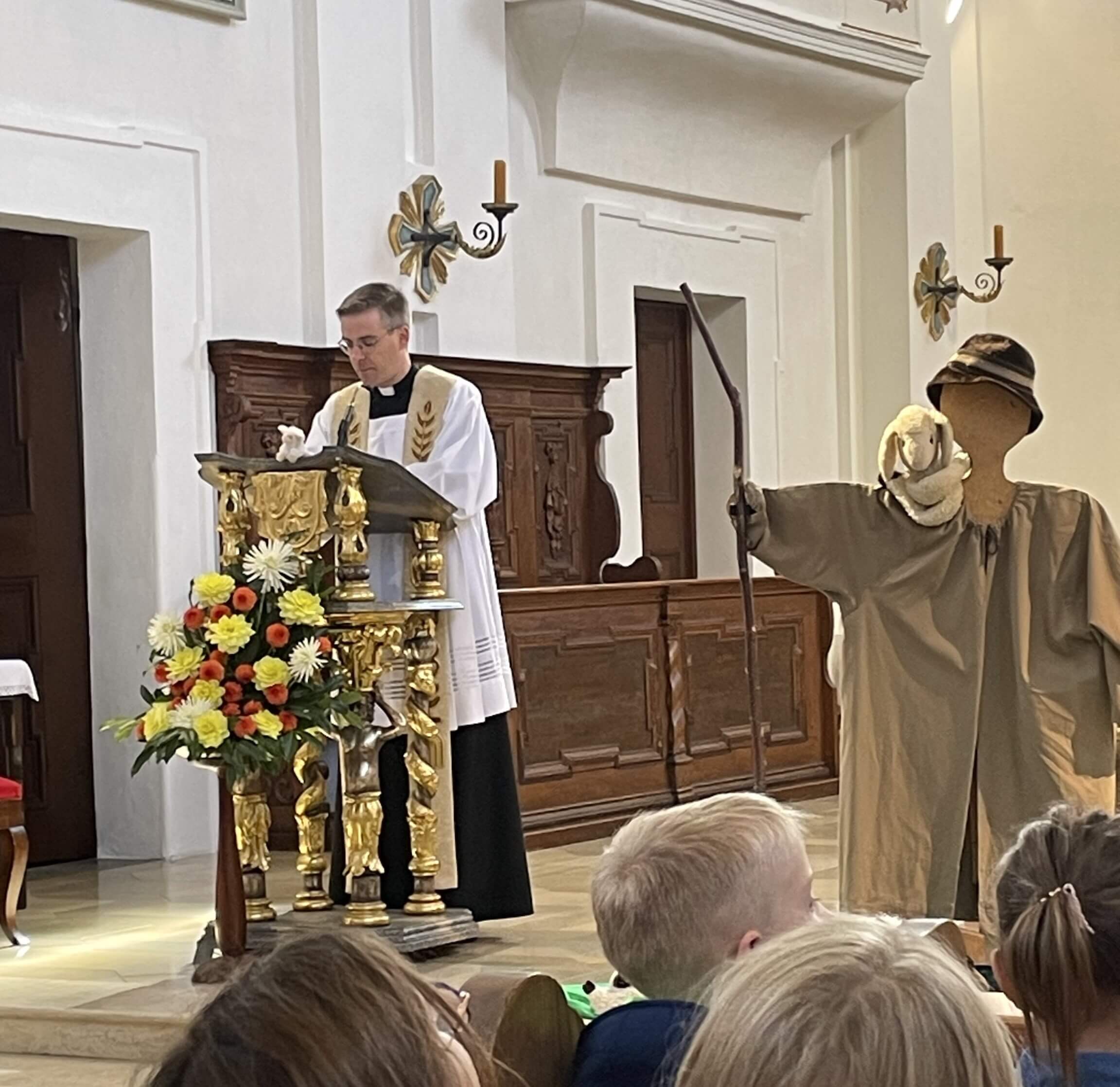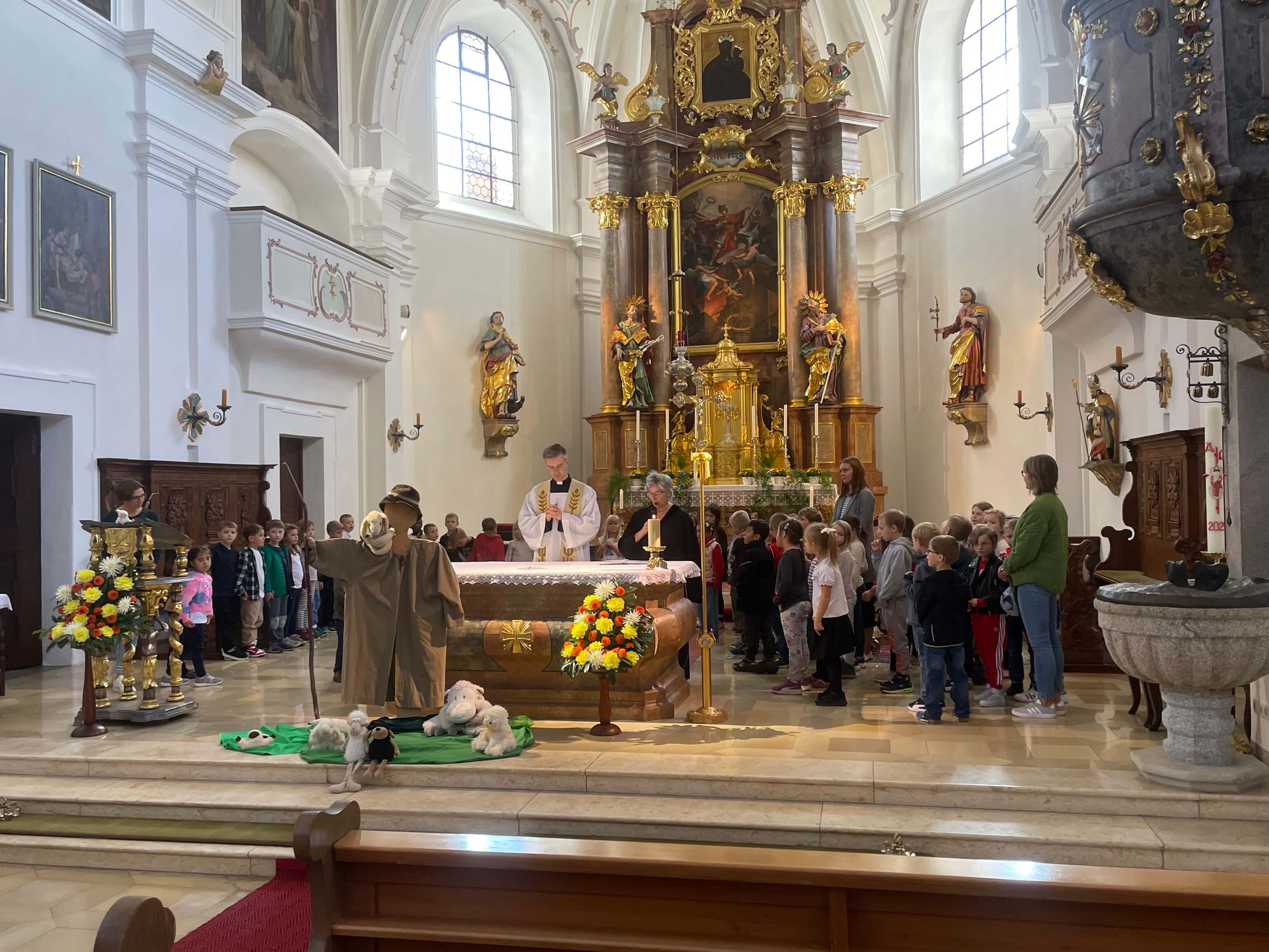 In der ersten Schulwoche pilgerten wir in die Stadtkirche St. Georg. Frau Engelhardt und Pfarrer Kopp hielten dieses Jahr eine schöne Andacht unter dem Thema "Ich bin dein Hirte". Diese hatte unsere Frau Engelhardt zusammen mit Gemeindereferentin Frau Stöckl vorbereitet. An der Orgel begleitete gekonnt Rektorin Frau Merther.