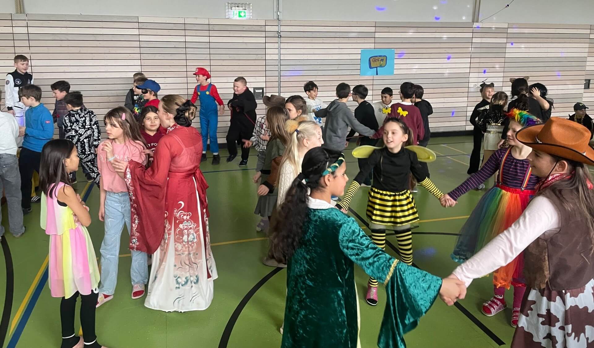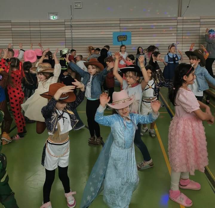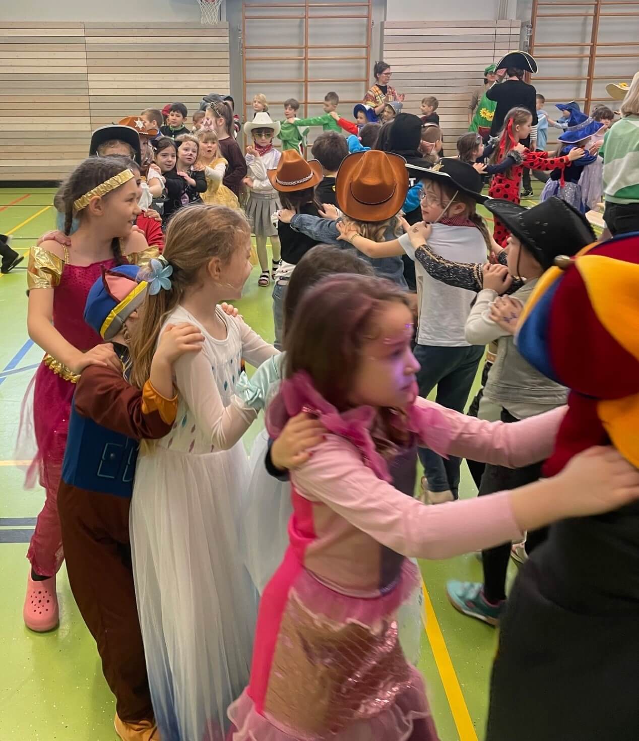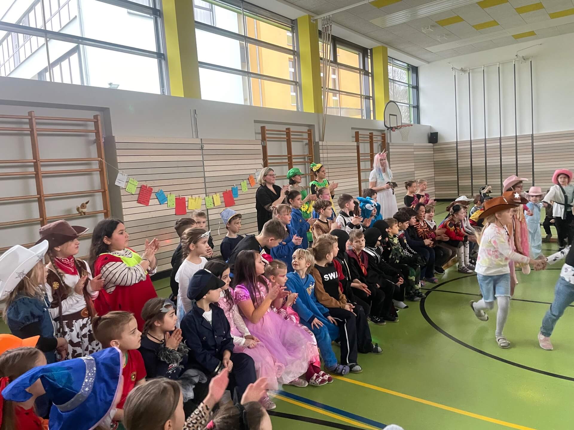Am Freitag vor den Faschingsferien war es lustig und laut in unserer Schule! Die gesamte Grundschule tanzte, lachte und feierte Schulfasching in der Turnhalle!