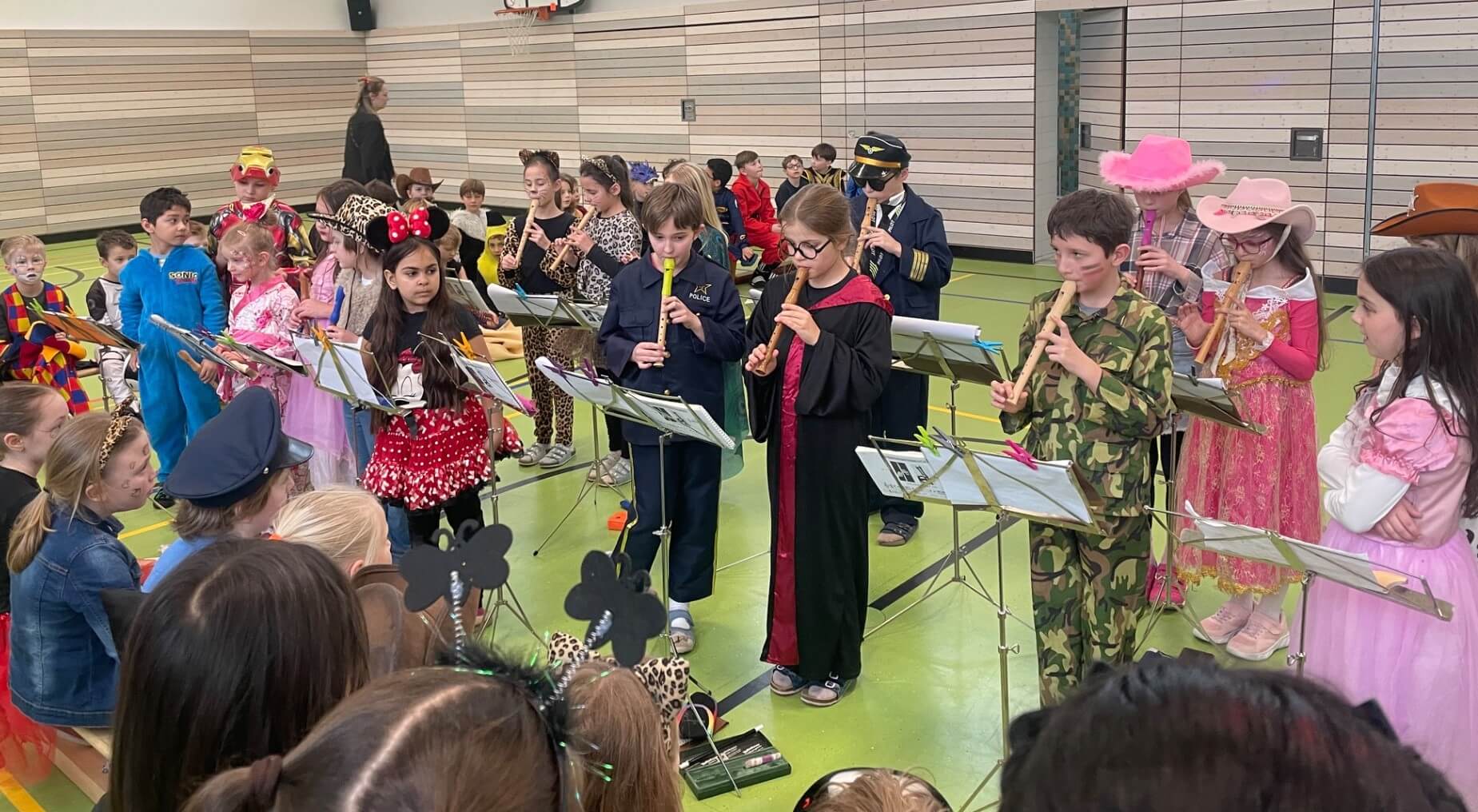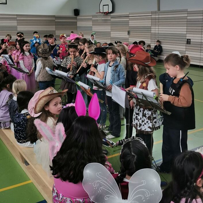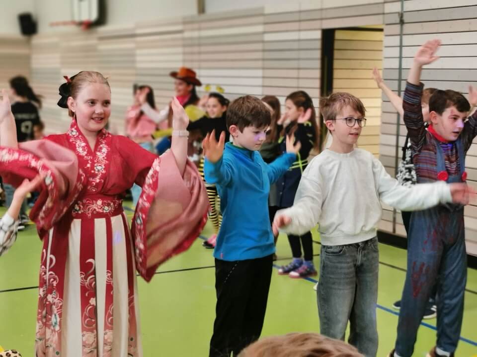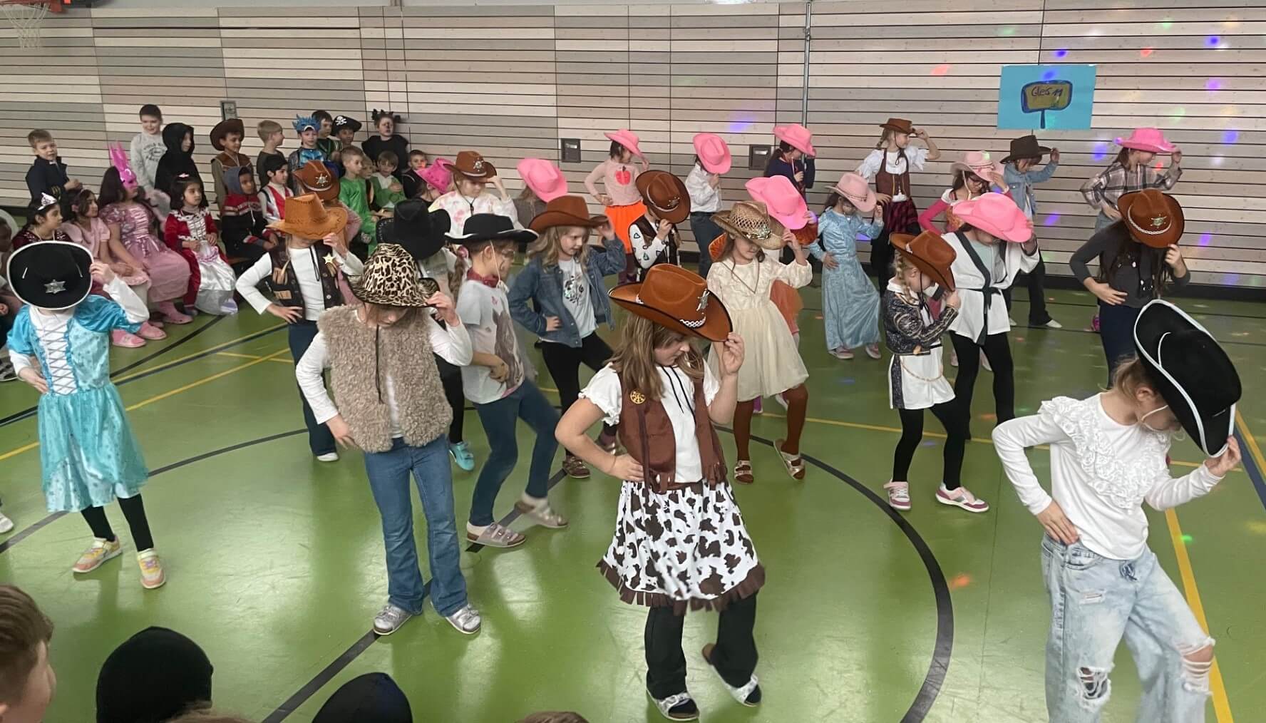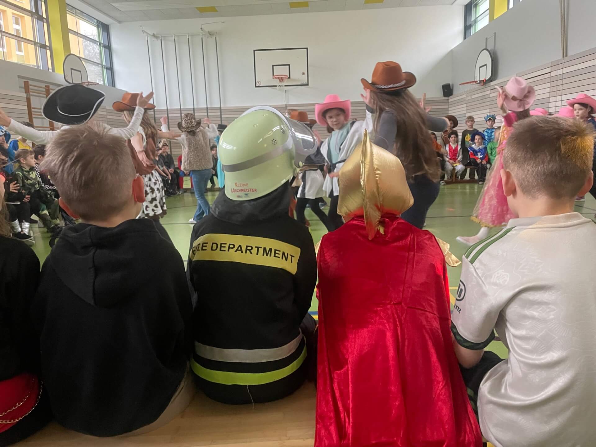 Am Freitag vor den Faschingsferien war es lustig und laut in unserer Schule! Die gesamte Grundschule tanzte, lachte und feierte Schulfasching in der Turnhalle!