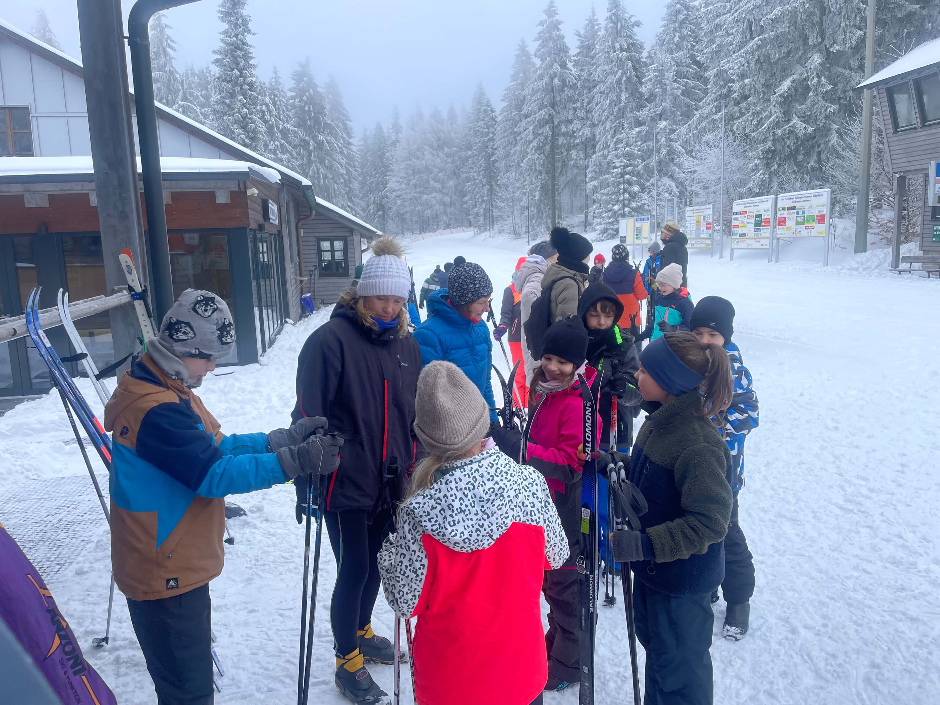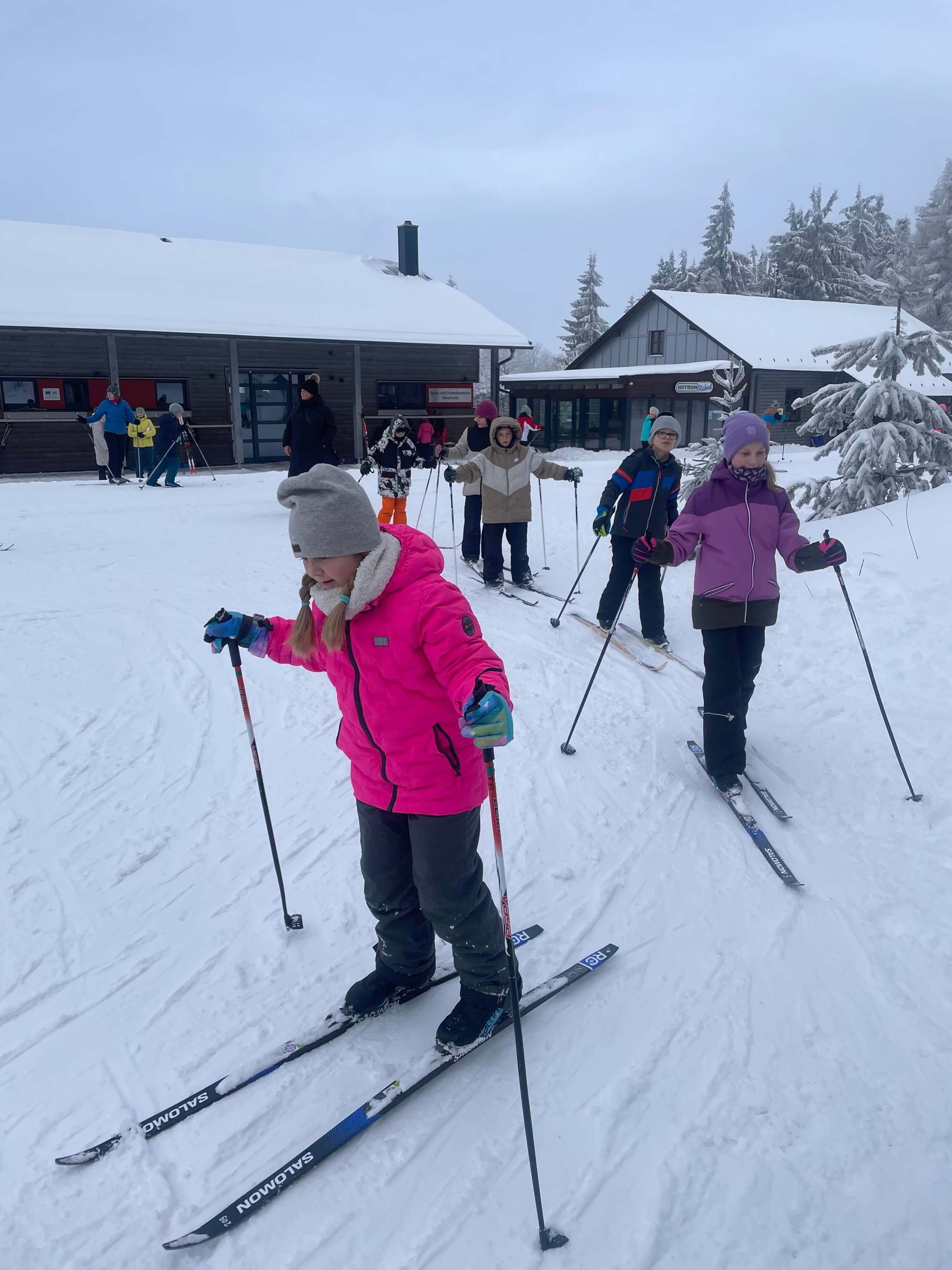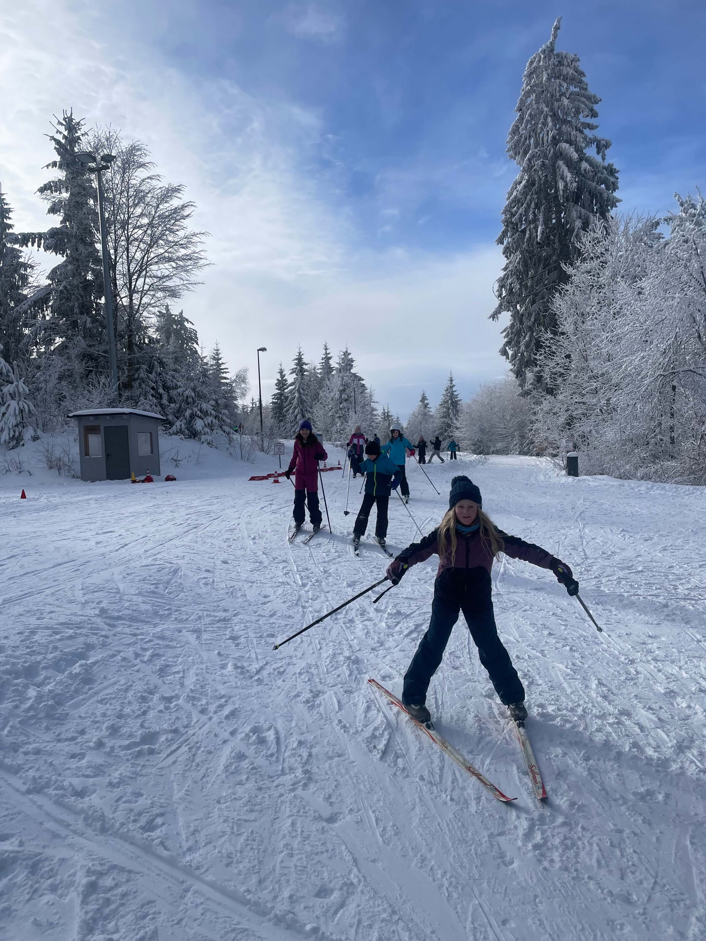 Am Mittwoch, den 28.1., hatten die vierten Klassen einen Langlauftag. Manche Kinder haben selbst Ski mitgebracht, von der Schule oder dem Verleih an der Silberhütte bekommen. Leider konnten wir nur die 2 km Strecke fahren, weil die anderen Strecken zu lang waren. Frau Köcher-Ziegler und Frau Fleischmann sind extra zum helfen zur Silberhütte gekommen. Frau Köcher-Ziegler hat mit ihren Kindern sogar versucht zu skaten. Das war ein schönes Erlebnis!